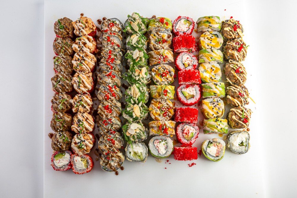 Запеченный ролл нежный угорь Запеченный ролл нежный лосось Темпура ролл с чукой Темпура ролл с опаленным угрем Ролл с авокадо и тунцом Калифорния манго и авокадо Фреш ролл с угрем и авокадо Жареный ролл со снежным крабом
