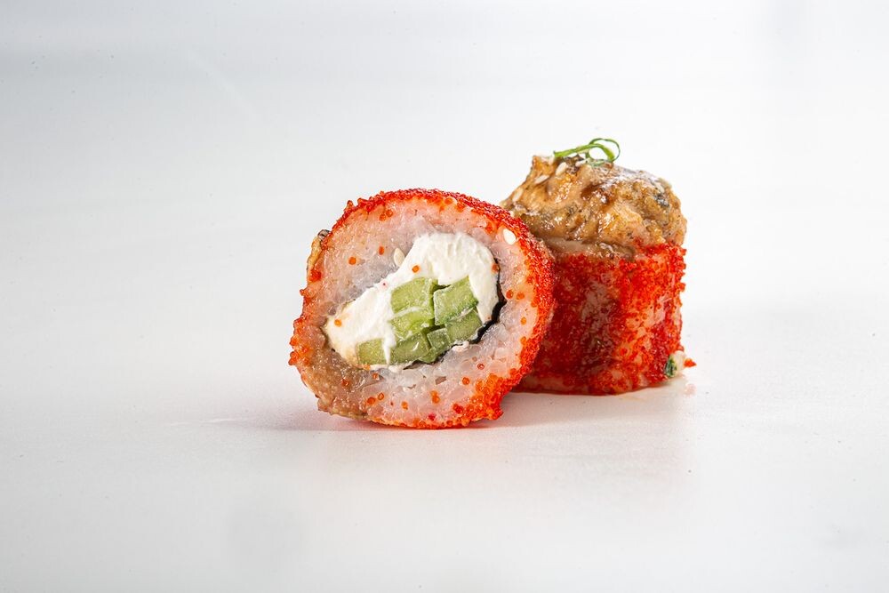 Два короля японской кухни в одном ролле с пикантными нотками спайси.