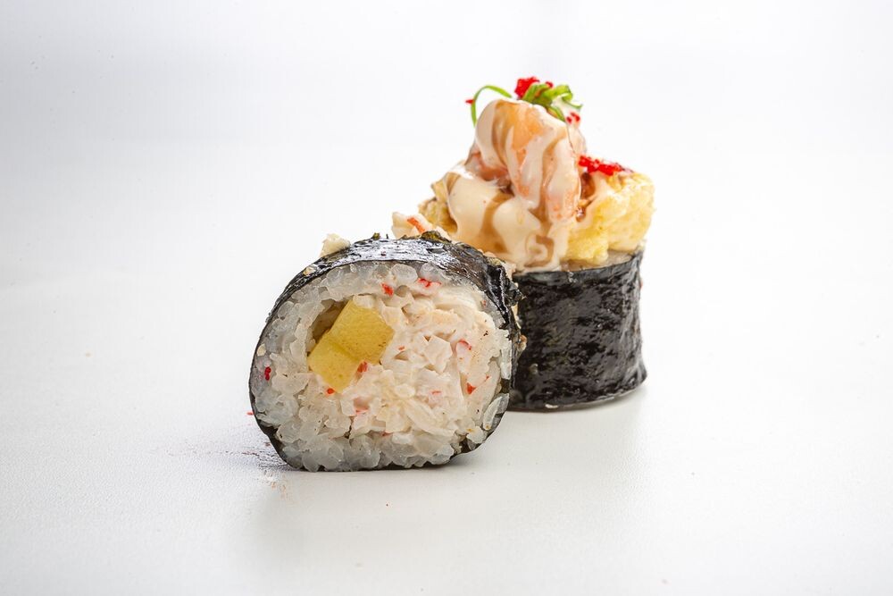 Запеченный ролл с креветкой фри и соусом Манго (4 шт)