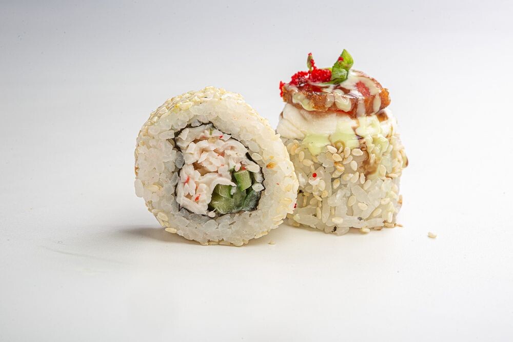 Изысканный ролл с обжаренным тунцом, нежным сливочным сыром и снежным крабом, подчеркнутый пикантными соусами.
